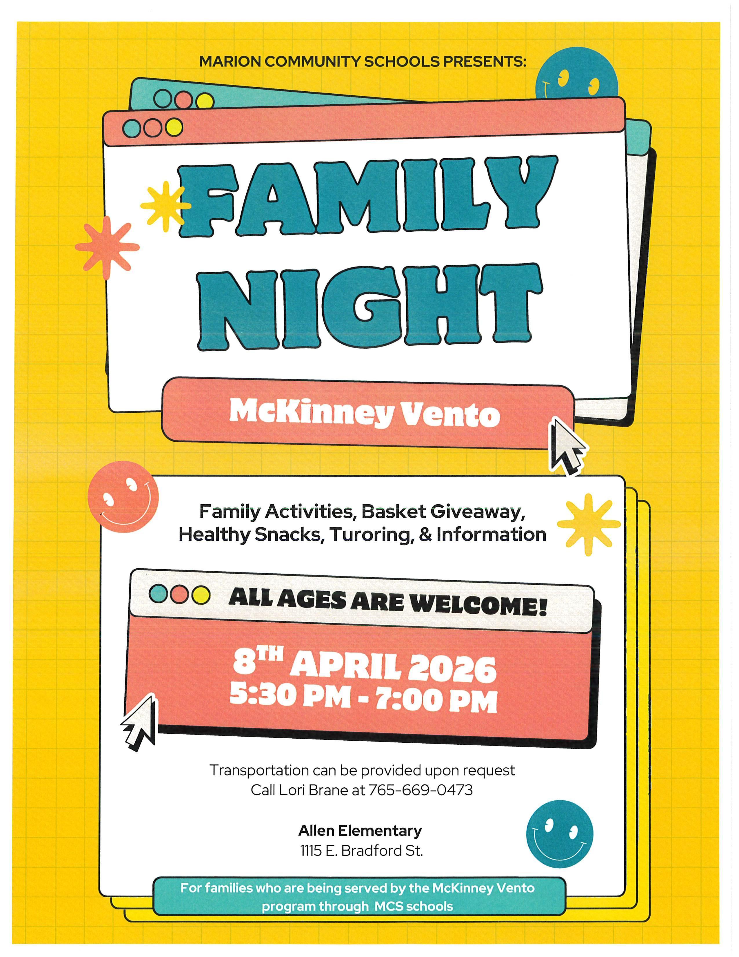 Marion Community Schools is hosting a McKinney Vento Family Night.